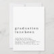 Convite Minimalista para Almoço de Formatura. Muito espaço em branco para um toque contemporâneo. O cabeçalho da ocasião é grande em letras minúsculas elegantes com os detalhes abaixo. Personalize facilmente o texto para seus próprios detalhes.