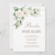 Este Modelo de Convite Floral Branco apresenta um design de flor mínimo com sotaques verdes suaves. O convite moderno editável é perfeito para um chá de fraldas ou borrifo de bebê com um tema simples e elegante.