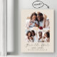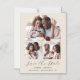 Este simples e minimalista cartão magnético Save the Date apresenta um arco de colagem de 3 fotos acima das palavras "Save the Date" em elegante guião preto, seguido pelos nomes dos casais, pela data do casamento e pela cidade em sans serif em fundo bege.