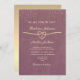 Mínimo, elegante, mínimo, convite de casamento roxo da boêmia moderna com coração de corda dourada e simples roteiro de caligrafia.