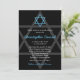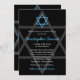 Simples preto e azul Estrela do convite de David Bar Mitzvah. As cores neste simples convite à Bar Mitzvah são preto, azul aqua e branco. Cores clássicas que são masculinas, elegantes e na moda. Embora este seja um convite personalizado para um Bar Mitzvah, ele poderia ser usado para várias ocasiões especiais, como uma festa de aniversário... depende de você. Tudo o que você precisa fazer é mudar o texto. Para alterar o texto, você pode usar as opções de personalização. Para alterações mais abrangentes no design, como alterações na cor de fundo, fonte, cor da fonte ou layout de texto, use a opção personalizar. Os símbolos da Estrela de David também podem ser removidos se você não os quer ou apenas alguns deles. Envie uma mensagem ao designer se você quiser que outros produtos aceitem este convite.