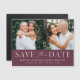 Anuncie sua data de casamento com esta na moda, imã salve a data de fotos moderna. O design apresenta duas das suas fotografias de noivado favoritas com "Save the Date" (Salvar a data) apresentadas abaixo em fontes de serif e script brancas contra um fundo de vinho. Personalize a data dos ímãs de fotos adicionando seus nomes, data e local do casamento. Os imã salve o dia simples são perfeitos para qualquer tema de casamento.