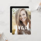 Um design moderno simples e bonito que caracterize a foto do seu formando na parte dianteira com todos os detalhes do partido ou do anúncio na parte traseira. A tipografia elegante, moderna em um estilo rotulado escova com uma sensação feminino em um formato vertical destaca a foto sem redução do seu formando na parte dianteira.