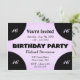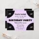 Centro Lilac no convite de festa de aniversário preta. Lilac e preto dão a isto um olhar moderno. Adicione a idade ou deixe-a vazio - Conclua com RSVP