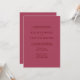 Celebre seu dia especial com nosso "Convite de Casamento Minimalista Moderno da Borgonha". Este design minimalista cria um eterno e um convite para a música que permite que a sua história de amor ocupe o palco central. Com linhas limpas e uma sensação contemporânea, é a escolha perfeita para casais que apreciam a beleza da simplicidade. Faça uma impressão duradoura em seus convidados com este sofisticado e na moda convite para casamento que dá o tom para sua celebração moderna de casamento.