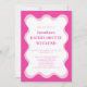 Prepare-se para celebrar com estilo com o nosso convite de despedida de solteira com design de onda moderna. Este convite simples, porém atraente, em rosa, rosa claro e branco é totalmente editável, permitindo que você o personalize com as atividades exclusivas do seu fim de semana.