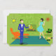 Este convite moderno do casal do meio século customizável olha como uma cena fora de uma comédia romântica. O estilo dos anos 60, características de design minimalistas da arte um casal atrativo dos desenhos animados que aprecia um nivelamento romântico em casa. A sala sofisticada caracteriza proeminente uma parede de pedra verde com um fogo rujir na lareira. O mobiliário na sala inclui uma laranja, a cadeira de sala de estar com footstool de harmonização, um vermelho, o pulso de disparo de parede do starburst, um amarelo, o dispositivo elétrico claro de sputnik, e uma mesa lateral alaranjada, que seja home a um verde, jogador gravado portátil. No assoalho ao lado da mesa de extremidade, um registro de vinil pode ser picar considerado fora de um cobrir kitschy do álbum. No centro do revestimento verde, há um grande, retangular, tapete da cerceta. No meio da cena, nós temos um casal muito sofisticado. Há um homem cortês em um terno dos azuis marinhos, em uma camisa branca e em um laço azul. O homem alto, escuro e considerável está olhando em seu companheiro bonito. A elegante, mulher de cabelo do corvo está vestindo um vestido do aqua do flouncy. São cada terra arrendada um o vidro de cristal de martini com uma azeitona de flutuação. Elogios! Está aqui ao nivelamento perfeito em casa! O lado oposto deste convite tem um fundo do teste padrão e uma abundância de pedra verdes da sala para personalizar para sua ocasião especial.