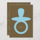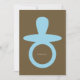 Este convite do chá de fraldas para um bebé tem um design moderno simples caracterizar um pacifier azul contra um fundo castanho chocolate. Personalize com seu próprio texto. Você pode mesmo mudar as pias batismais clicando "personaliza-o" botão.