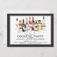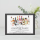 O convite original da festa de noivado do cocktail que caracteriza uma cena do cocktail da aguarela com licor engarrafa & as bebidas ajustadas em um fundo branco com um quadro preto.