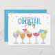 Hora do coquetel. Convide seus amigos e parentes para tomar coquetéis com este cartão postal de convite caprichoso. Com copos de vinho brancos, guarda-chuvas, limões e limões. Excelente de Aniversários, Inversários, Partidos de Escritório ou qualquer evento. Este design apresenta um simples partido de coquetel minimalista, água branca bebe verão, moderna e moderna na moda moderna contemporânea, álcool rosa-champanhe engraçado, vinho de aniversário tropical de casa, um vinho casual de aniversário tropical, um romântico fresco, romântico moderno, uma escrita minimalista moderna, bebidas adultas simples e divertidas.