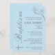 Este elegante convite para o batismo azul apresenta um delicado design floral no canto superior direito e uma cruz simples no canto inferior esquerdo, criando uma estética serena e espiritual. A escrita "Batismo" flui verticalmente ao longo do lado, acrescentando um toque elegante. O texto do convite é definido numa mistura de fontes serif e script, oferecendo detalhes da cerimônia de batismo, incluindo o nome, a data do evento, a hora e a localização da criança. Perfeito para celebrar esta ocasião sagrada com graça e estilo, esta design é personalizável para incluir os detalhes do seu dia especial.
