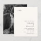 Convite para casamento de orçamento moderno com um layout simples e minimalista com seu monograma no canto superior esquerdo e seus detalhes de casamento no canto inferior direito. O fundo tem sua foto favorita. Todos os elementos de design estão em cinza sobre um fundo de marfim neutro e podem ser alterados na ferramenta de edição de design. Este convite de casamento chic com um design mínimo, mas elegante, vai bem com qualquer estilo de casamento contemporâneo.