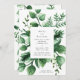 Convocação para Casamento da Folha Renovada Moderna de Folha Verde - pintura de detalhes de arte foliar no design de convite para casamento branco. Cores verdes frescas para um casamento de verão ou primavera com vegetação/folhas de plantas exuberantes. Casamentos exteriores, casamentos naturais verdes, casamentos modernos e nítidos. Casamentos de destino