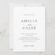 Este convite para o casamento apresenta um design moderno minimalista com um layout limpo, alinhado ao centro e um espaço branco generoso. Ele usa uma mistura de fontes elegantes e delicadas de script para criar um olhar na moda, contemporâneo. O texto preto sobre fundo branco o mantém simples e eterno, sem gráficos ou embelezamentos extras, permitindo que a tipografia se destaque lindamente.