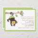 Um adorável macaquinho pendura perto da cauda de um ramo florescente azul neste doce convite de chá de fraldas para quando vai ser uma surpresa.