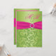 Convite Monogrammed do damasco cor-de-rosa e verde