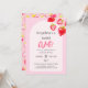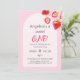O Convite ao primeiro aniversario é decorado com um delicado padrão de morango doce.