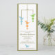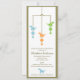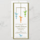 Três dinossauros bonitos no cair azul, verde, e alaranjado de um móbil neste convite adorável do chá de fraldas.