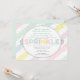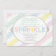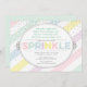 Este convite à pulverização de bebês neutro apresenta texto suave e confete com um padrão de fundo de faixa diagonal no arco-íris multicolorido e prata. O design de trás é uma cor verde de menta sólida que corresponde à frente. Seus hóspedes vão adorar este na moda e design único.