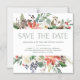 Este elegante casamento de feriado salva os cartões de data com flores rústicas de aquarela com pinecones, ramos, bagas, folhas e rosas brancas.