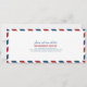 Uma passagem de embarque inspirou o convite do bilhete com detalhes do selo do passaporte do divertimento e listras do correio aéreo. Mostrado nas máscaras do marinho, do vermelho, e do cinza. A parte traseira inclui o espaço extra para toda a informação do hotel, do viagem ou do Web site.
