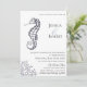 Marinho azul vintage desenhou o convite para o casamento de cavalo marinho e coral. Personalize o estilo, a cor e o tamanho da fonte do texto.