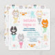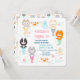 Um convite de aniversário de temas náuticos decorado com gatinhos fofos de sereia.
