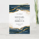Convite Navy Blue Gold Abstract Ink QR Code Wedding