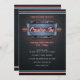 Neon Cruise-In Invitation apresenta sinal de neon tipográfico de "Cruise-In". Este design inclui elementos de vermelho e azul, sinal de néon e elementos inspirados por drives retroativos. O produto inclui um modelo para personalização pessoal.