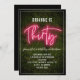 Um convite de trigésimo aniversário com o texto "Trinta" em design neon rosa sobre um fundo inspirado em folhagem de buxo com texto branco personalizado.