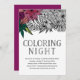 Hospedando uma noite de coloração adulta? Convide os amigos a compartilharem seu lado criativo com estes belos convites noturnos para colorir, apresentando uma borda superior de flores tropicais exuberantes em preto e branco, parcialmente coloridas com matizes brilhantes e vibrantes.