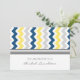 Convites nupciais do almoço em azuis marinhos escuros elegantes, limão brilhante - os ziguezagues retros e ocasionais do amarelo, os cinzentos e os brancos da viga listram o teste padrão, chique e feminino, customizável com seus detalhes do chá. Também disponível no obrigado você cartões e convites para o partido nupcial.
