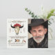 Um convite bonito, desenhado mão, da aguarela com um tema ocidental que caracteriza um crânio da vaca, setas, penas e elementos do indiano. Apenas adicione sua foto e personalize-a para fazer-lhe seu. (<a href='http://www.freepik.com/free-vector/watercolor-pack-of-ethnic-elements_1075989.htm'>Projetado por Freepik</a>). <br/><br/>O cartão é fácil de personalizar com seus fraseio, pia batismal, cor da pia batismal e escolha de seis tipos de papel<br/><br/>Não exatamente que você está procurando? Todos nossos produtos podem ser projetados para encontrar suas necessidades em nenhuma sobretaxa<br/><br/>Contacte-nos simplesmente em heartfelthelper@gmail.com<br/><br/>Produtos de coordenação disponíveis: Convite ocidental da foto dos elementos