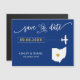 Você escolheu um lugar especial para o seu casamento. Agora é hora de celebrá-lo com este cartão de imã salve a data keepsasasasasasasasasak, com um mapa da silhueta e um pequeno avião indo para o seu destino. Para mover o coração para o lugar do seu casamento, clique em personalizar e, em seguida, "personalizar ainda mais".