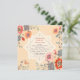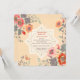 Um convite quadrado adorável com flores ondulantes e borboletas a rodopiar.