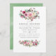 Enrosque rosas e peões cor-de-rosa com convite floral de casamento no inverno com sotaques verdes projetados para serem rápida e facilmente personalizados de acordo com as especificações de seu evento.
