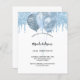 Um fundo branco. Decorado com pingos de brilho azul claro, aparência de pingar tinta e balões. Personalize e um nome e detalhes da festa. 1 folha = 1 convite impresso de borda a borda.