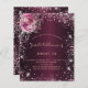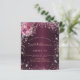 Para um elegante aniversário de 16 anos (ou qualquer idade). Uma cor de fundo metálica de aparência falsa e burguenta. Decorados com poeira brilhante e flores, cor-de-rosa. Personalize e adicione um nome, idade e detalhes da festa. O nome é escrito com um script de estilo manuscrito
