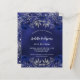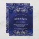 Um fundo azul marinho, decorado com rosas azuis, flores. A cor azul é irregular. Personalize e adicione um nome e detalhes da parte. Traseira: marinho azul e falso prata brilha. 1 folha = 1 convite impresso de borda a borda.