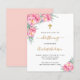 Um fundo branco decorado com flores cor-de-rosa. Personalize e o nome e os detalhes da cerimônia. Letras pretas e ouros coloridas. Traseira: cor de fundo embaçada.