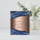 Um convite moderno, na moda e glamouroso para uma Quinceañera, festa de aniversário 15. Ouro azul e rosa, fundo de mármore. O nome é escrito com um moderno estilo escrito à mão. Personalize e adicione os detalhes da sua festa.