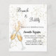 Um convite moderno, na moda e glamouroso para um Chá de panela de bolinho. Um fundo branco com bolhas, um par de flautas, óculos. O nome é escrito com um moderno estilo escrito à mão. Personalize e adicione os detalhes da sua festa. Traseira: fundo cor-de-rosa com bolhas.