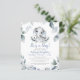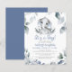 Chá de fraldas de aquarelas bonitinho, convite amigável ao orçamento, impresso em papel leve de 4,5x5,6 polegadas, com um elefante doce de aquarela segurando um coelho recheado cercado por eucalipto macio, aquarela e verde em azul empoeirado, verde sábio e cinza com o título IT É UM BOY IN calliographic typografia. Ideal para entregar aos convidados. ASSISTÊNCIA: para obter ajuda com a modificação/personalização do design, alteração de cor, transferência do design para outro produto ou, se você quiser coordenar itens, entre em contato com o designer ANTES DE ENCOMENDAR através da guia MENSAGEM de bate-papo Zazzle ou por e-mail em makeitaboutyoustore@gmail.com.