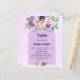 Um fundo violeta, lavanda pintado à aguarela. Decorado com flores violeta e roxo pintadas à aguarela e uma cruz dourada. Personalize e o nome e detalhes da recepção.