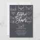 Convite do chá da lingerie que caracteriza a luz - os sutiãs & os calcinhas cor-de-rosa com uma mão chique rotularam a pia batismal ajustada em um fundo preto do quadro. Lance nosso chá de casamento convidam sobre para ver uma parte traseira de harmonização para um toque especial extra.