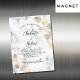 Impressão de mármore como fundo decorado com ouros de eucalipto. Personalize e seu nome e detalhes da cerimônia.