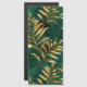 Padrão contínuo de ouro, joias, ramos de samambaia brilhantes e folhas em fundo verde, florestal e texturizado. Samambaia dourada.