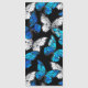 Borboletas realistas, azuis e brancas têm um padrão uniforme em fundo preto.