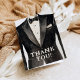 Obrigado suas padrinhos de casamento por participar do dia do seu casamento! Cartões de agradecimentos dobrado, ilustração de terno preto e branco com dentro vazio.