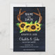 Marinho celeiro de madeira floral girassóis florais galhantes casamentos quic rustic country salvar data cartões de anúncio